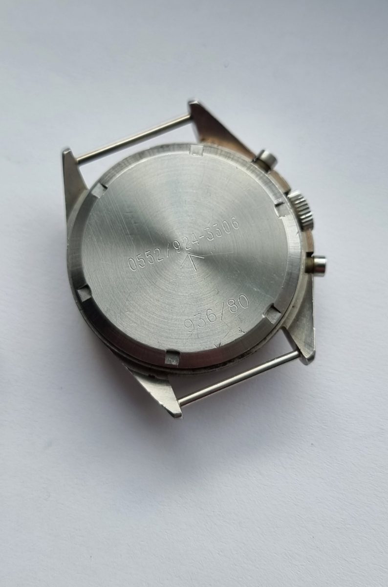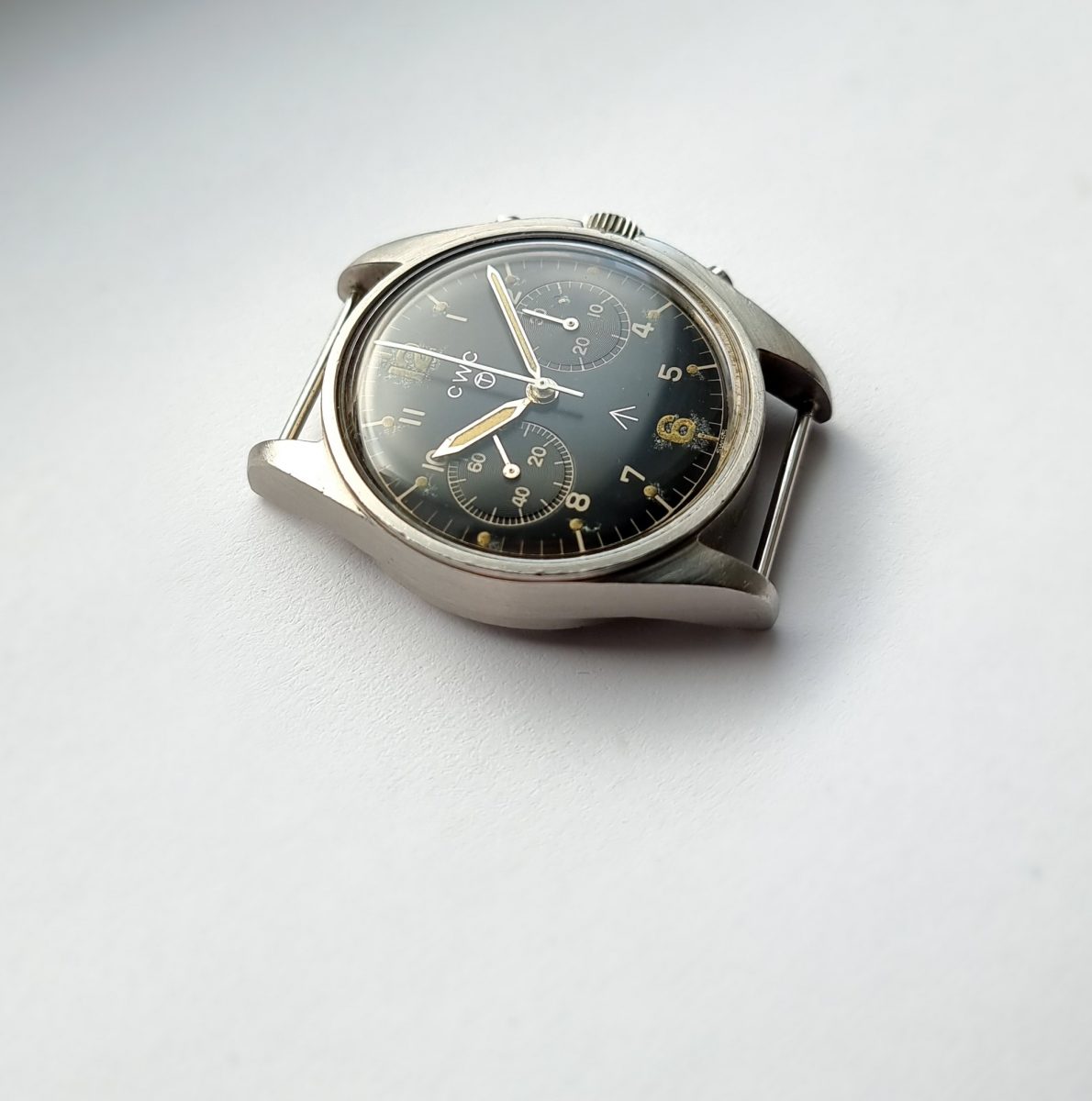 A very nice and hard to find CWC Chronograph ‘Fab Four’ issued to the Royal Navy for its Fleet Air Arm pilots. CWC are finally getting the recognition they deserve and have become well sought after by mil collectors. This example was issued in 1980 and has a Valjoux 7733 fitted. The case back engravings are still nice and sharp showing the correct 0052/924-3306 and 936/80.