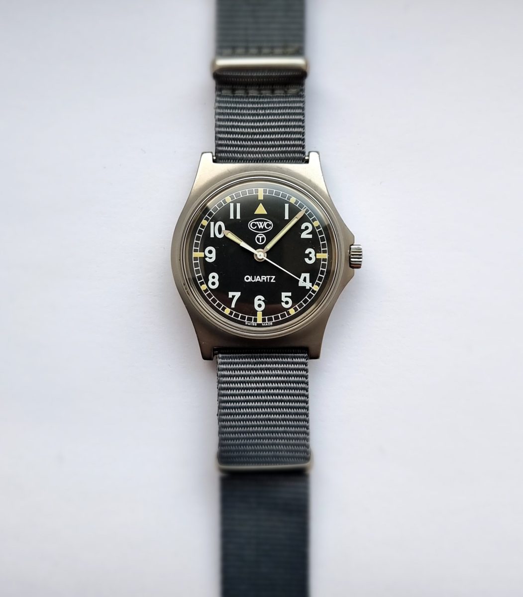 A new battery has been fitted and the watch is running well. Comes on a new grey nato band as seen.