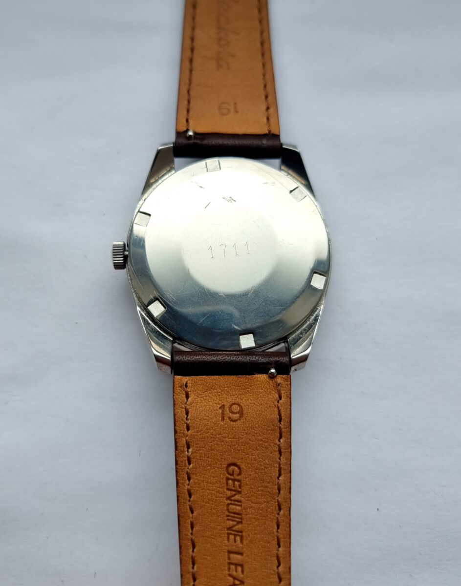 The watch wears very well on the wrist at 36.5mm, and the lugs are 19mm. The case appears unpolished and is in good shape, there are a few light wear marks commensurate with age.